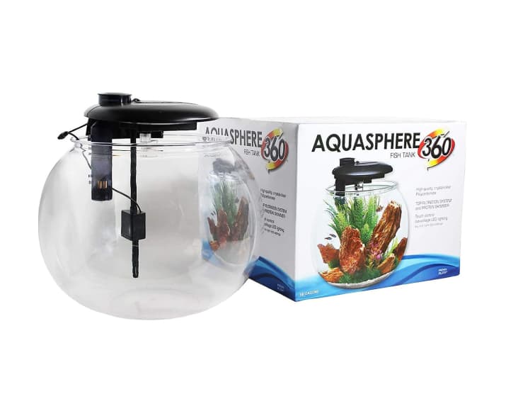 Give your fish friends an abode like no other in the Penn-Plax Aquasphere 360° Fish Aquarium. This unique aquarium features a beautiful rounded design and a strong polycarbonate construction. The top-set filtration system can be used for both freshwater or saltwater fishy pals. This mesmerizing aquarium also includes a touch-control, low-voltage LED light that can be changed to a red, green or blue color.