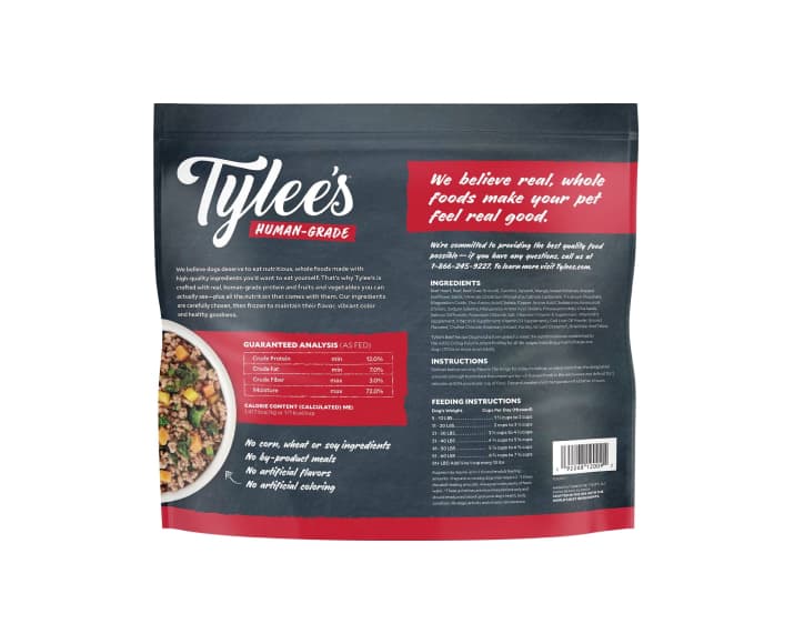 Tylee’s Beef Recipe Human-Grade Food for Dogs gives you all the benefits of a homemade meal for your pup, without any of the prep work or hassle. Tylee’s is made with human-grade ingredients just like you’d find in your own kitchen—real, whole foods you can see and recognize.