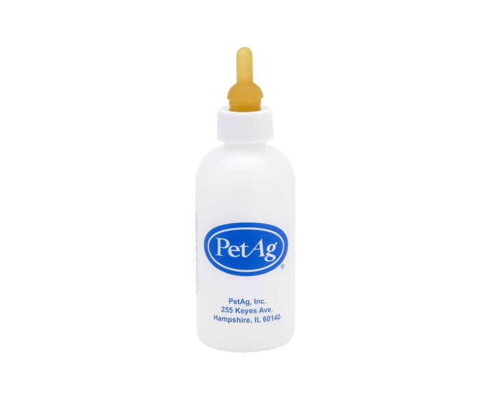 PetAg Complete Nursing Kit contains all the equipment you need to feed newborn animals—including a bottle, several nipples of varying shapes, and a cleaning brush.