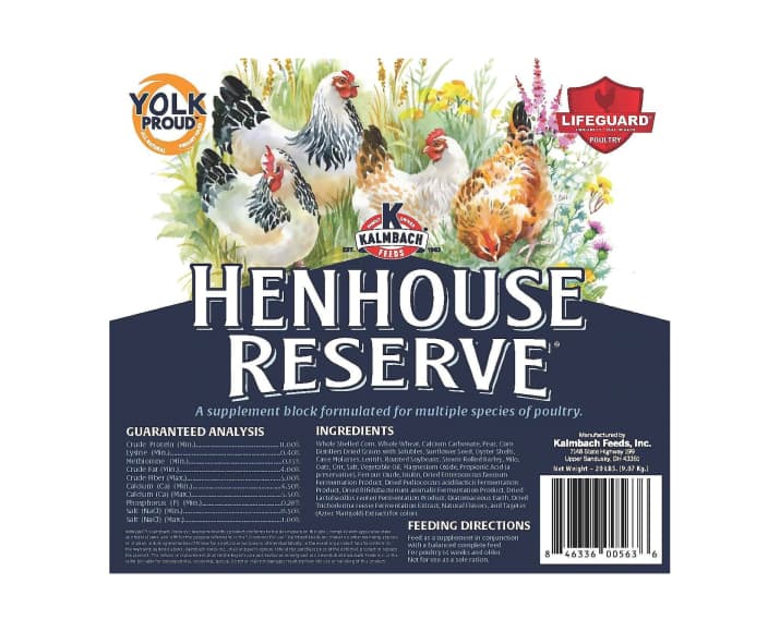 The Kalmbach Feeds Henhouse Reserve Poultry Supplement is packed with top-quality ingredients to keep your flock flap-happy!