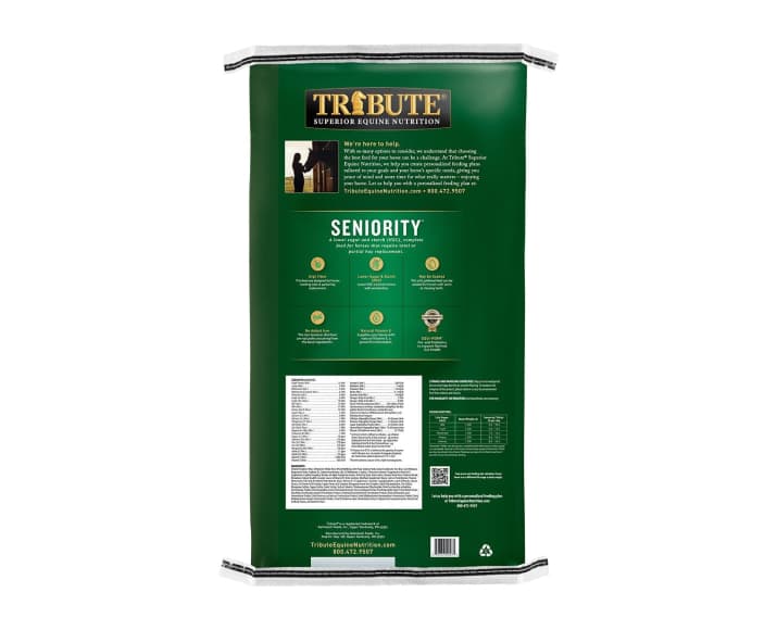 Nourish your equine friend with superior-quality nutrition by feeding her Tribute Seniority Pellet Horse Feed!